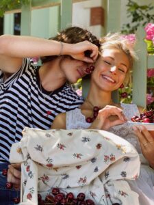 Pour cette installation, la marque a choisi de mettre à l’honneur un ingrédient emblématique du Pays Basque : la cerise noire.